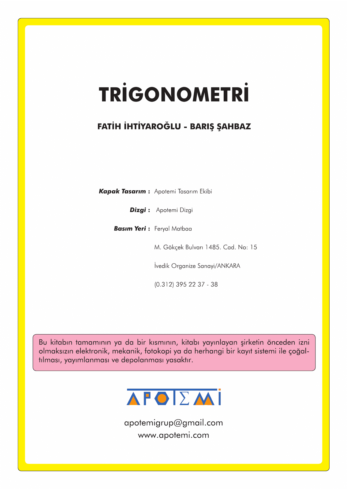 2017 Apotemi Trigonometri Fasikülü PDF indir sitemizde bulunan tüm PDF dosyaları yeni müfredat'a tam uyumlu tamamı renkli ve kaliteli yeni basım kitaplardır. Yapmanız gereken aşağıdaki linkten PDF dosyasını normal indirme olarak indirmektir.