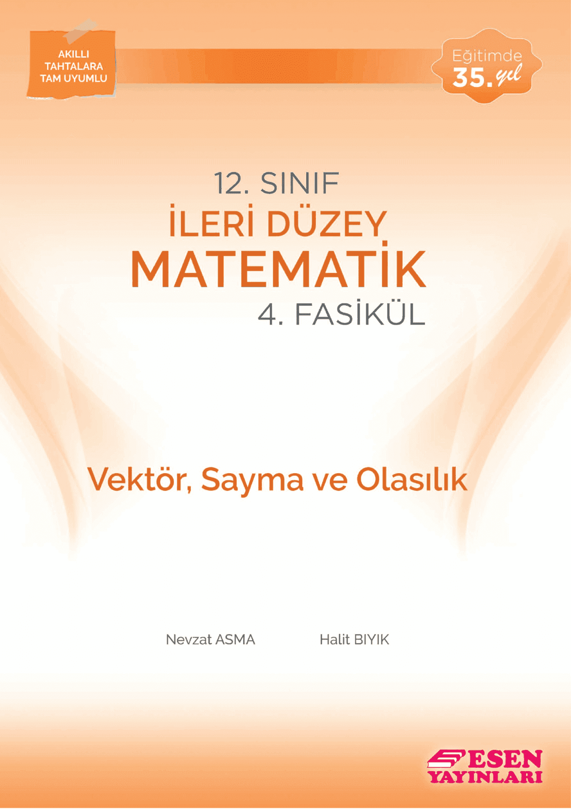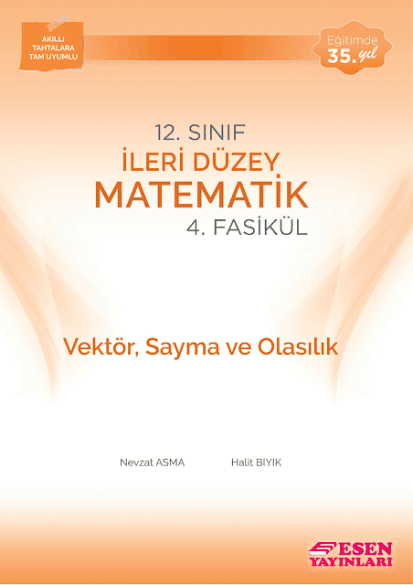 Esen 12. Sınıf İleri Düzey Matematik 4. Fasikül Vektör Sayma Olasılık PDF indir. Esen yayınlarının 4. fasikülü olan vektör sayma ve olasılık konularını barındıran fasikülü pdf olarak indir.