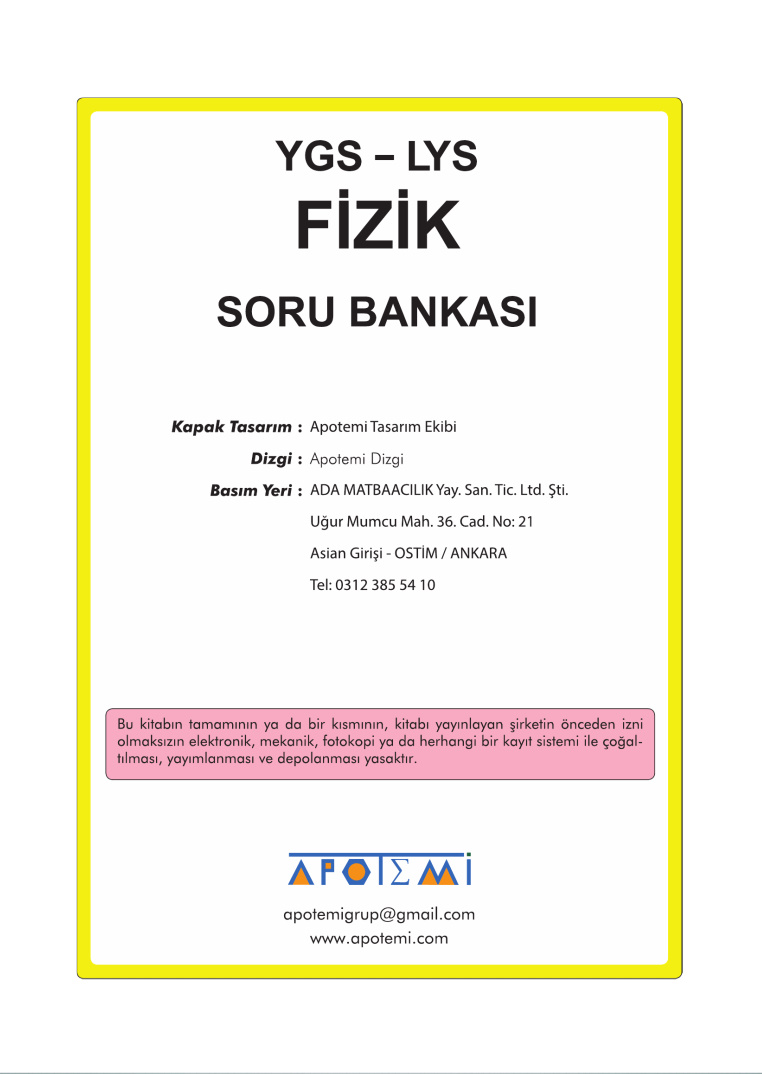 Apotemi yayınları fizik dersi tyt ve ayt sınavı için hazırladığı apotemi fizik soru bankası pdf kitabını aşağıdaki linkten pdf olarak indirebilirsin.