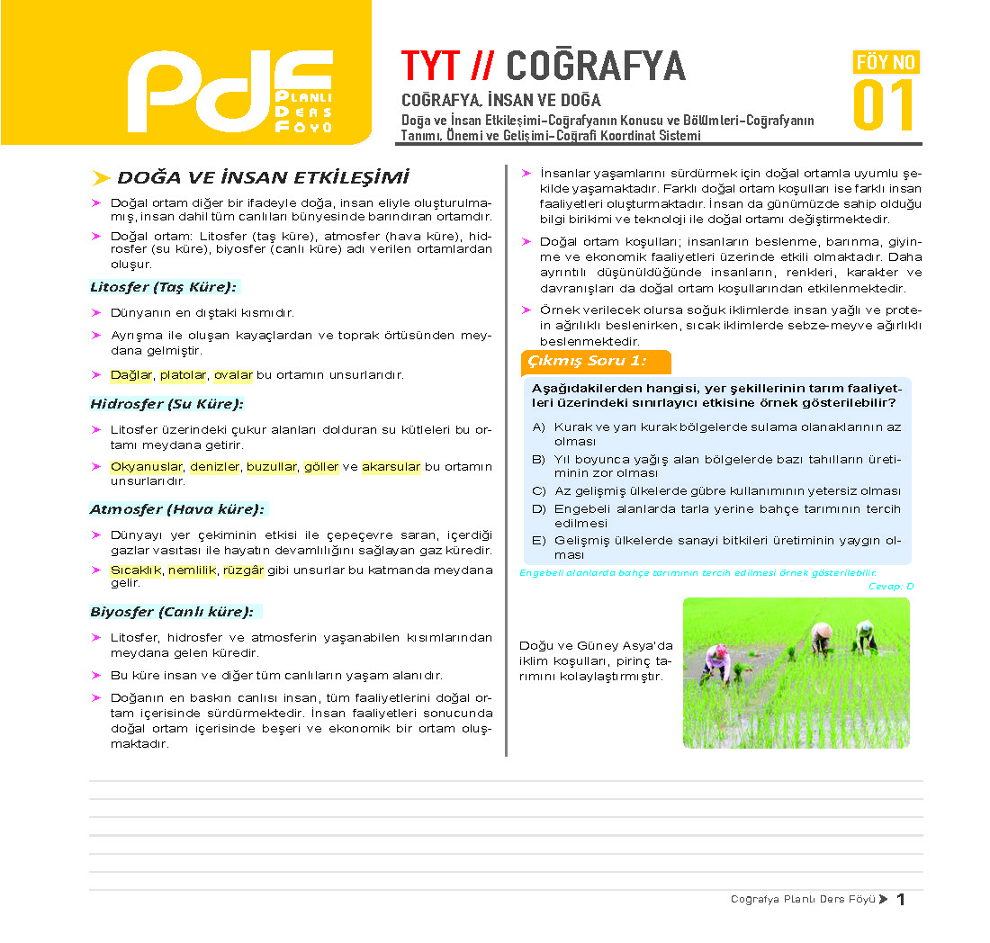 Eğitim vadisi yayınlarının Coğrafya dersi tyt testi için hazırladığı Eğitim Vadisi TYT Coğrafya Planlı Ders Föyü PDF fasikülleri pdf olarak indirebilirsin.