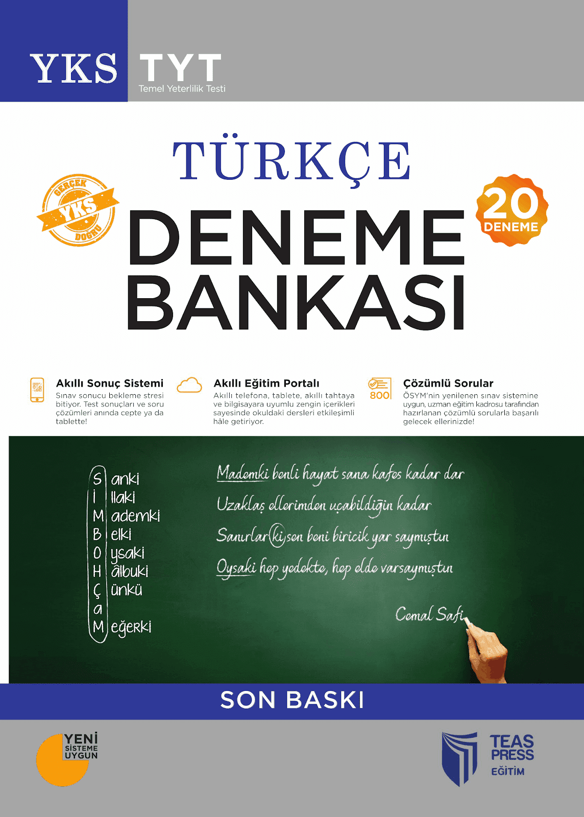 Teas Press Yayınları PDF Türkçe dersi TYT Testi için hazırlanan Teas Press 20 TYT Türkçe Deneme Bankası PDF kitabını aşağıdaki linkten PDF olarak indirebilirsin.