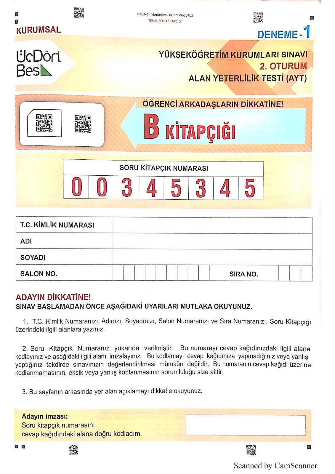 345 Yayınları PDF Kurumsal DENEME sınavı serisi AYT Testi için hazırlanan 345 Kurumsal AYT Deneme 1-2-3-4 PDF kitabını aşağıdaki linkten PDF olarak indirebilirsin.